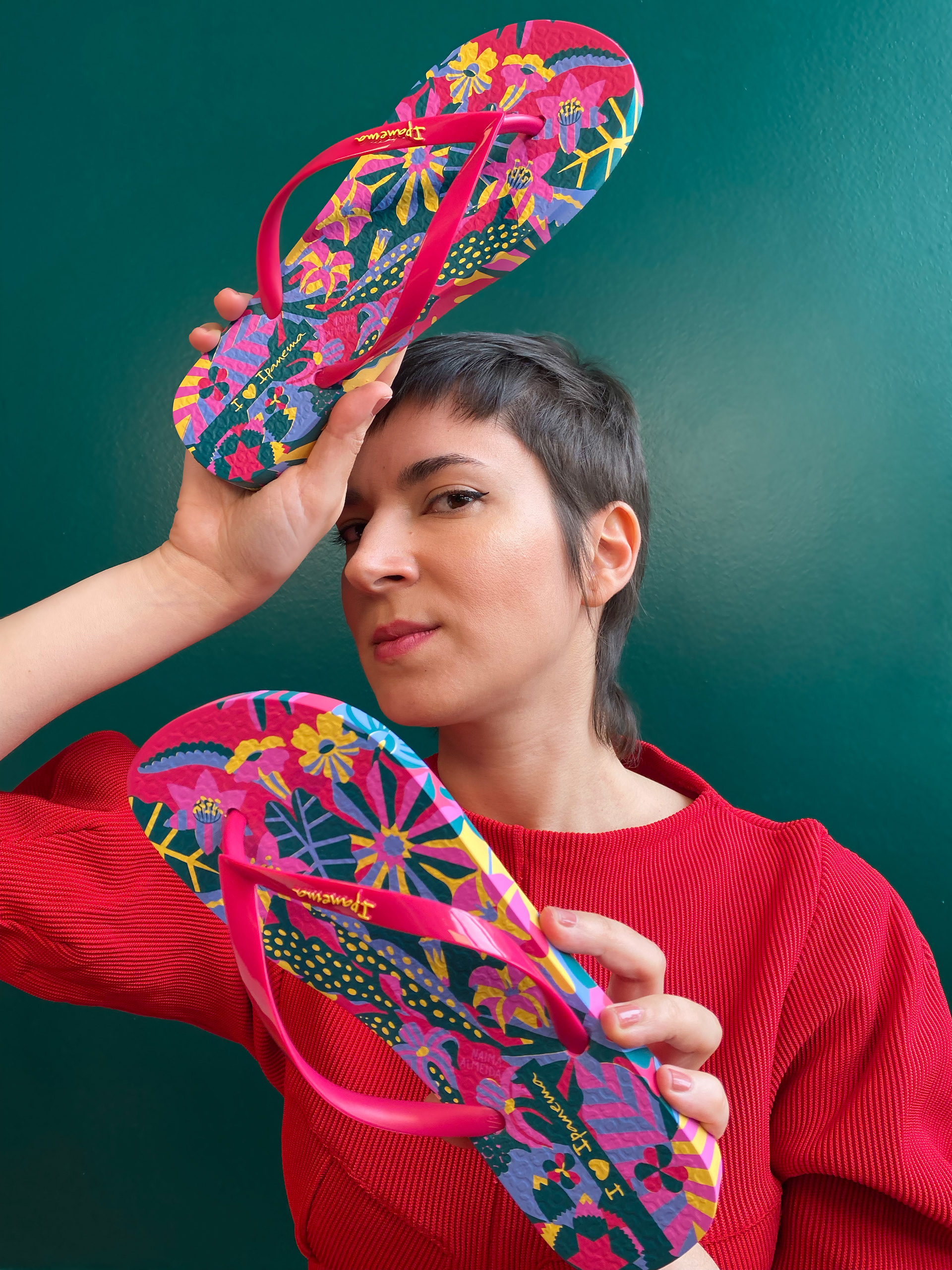 Ipanema invited me to be part of the "Arte Conecta" collection, with these wonderful artists Aju Paraguassu e Juliana Fervo. Each artist created your own design. For my sandals I illustrated different species from Brazilian biomes, to represent all regions of the country.